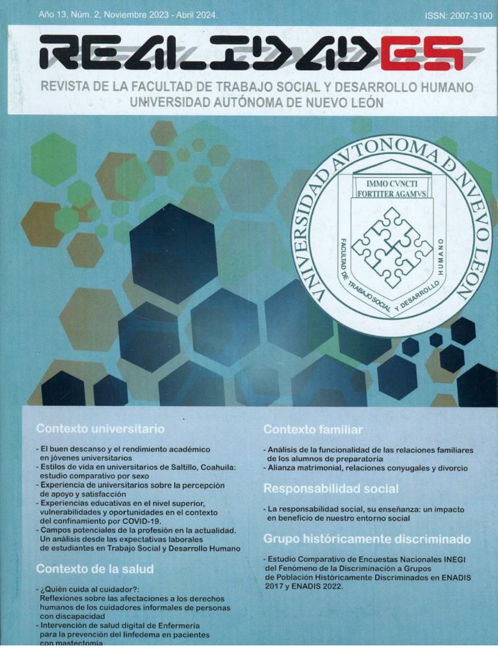 Los/as autores/as que envíen sus artículos para ser evaluados a REALIDADES, ceden los derechos de publicación a la revista, para difusión en formato digital y en versión impresa. Al formar parte de múltiples indexadores, bases de datos y sistemas de referencia, los artículos que sean publicados por REALIDADES se encontrarán visibles y serán descargados también de estos sitios web, indicando, en todos los casos, la autoría de los artículos, la fecha de publicación y el número de la revista al que corresponden. Todos los documentos publicados por REALIDADES pueden descargarse de la página web de la revista: http://realidades.uanl.mx/index.php/realidades/about/editorialPolicies#sectionPolicies y de las bases de datos donde se encuentra indexada.